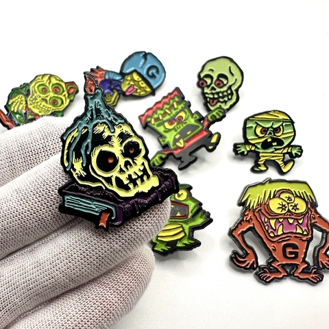 تصميم هيكل عظمي مخصص الكرتون الحرفية دبابيس طية صدر السترة شارات أنيمي-دبوس